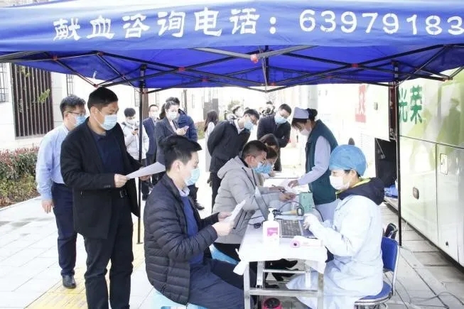 齊聚集團門(mén)口義務(wù)獻血點(diǎn),